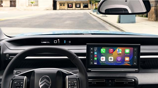 El ë-C3 integra un sistema de infoentretenimiento avanzado con una pantalla táctil central de hasta 10,25” (en Plus y superiores), que ofrece funciones de navegación 3D conectada, conectividad Apple CarPlay y Android Auto inalámbricos, así como carga inalámbrica para smartphones en las versiones más equipadas.
