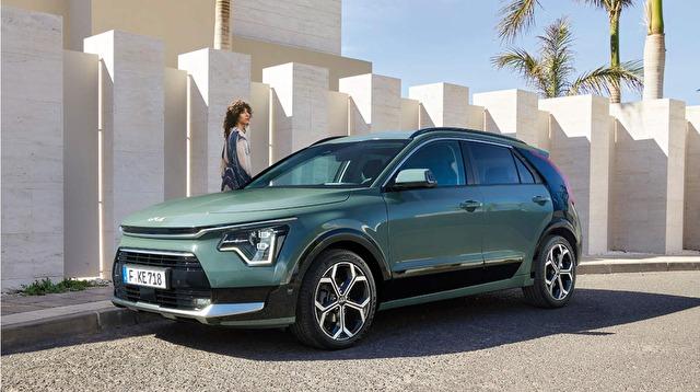 El Kia Niro EV añade una parrilla hexagonal de dos tonos, parachoques ancho del color de la carrocería y revestimiento en gris acero, junto con llantas de aleación personalizadas de 17" para el e-Niro y llantas de 16" o 18" para las versiones híbridas.